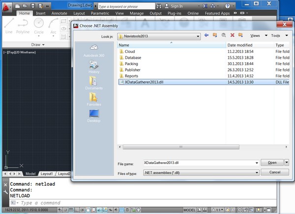 Before AutoCAD can interoperate with XData Gatherer we had to setup a database connection. To define datasource, please launch AutoCAD and load C:\Navistools2014\XDataGatherer2014.dll with Netload command