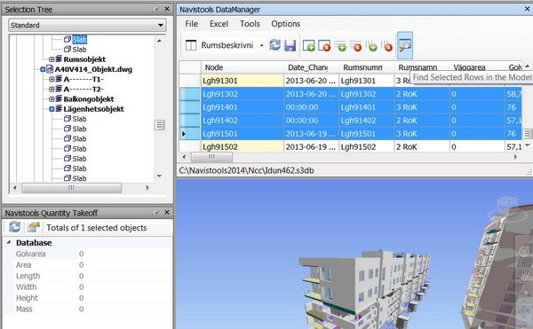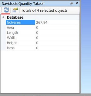 4. Now program is ready to calculate total “Golvarea” of selected objects when used. Note that you can define also other Categories than Database. All properties (real or integer fields) of the Model are available to use.